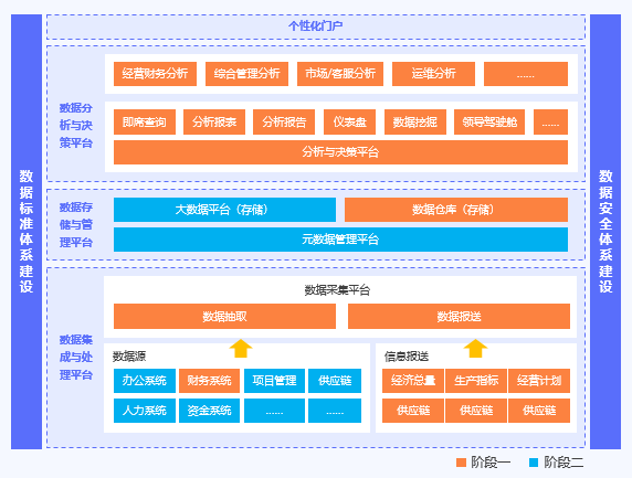 4、搭建統一的數據倉庫平臺,實現數據采集、數據存儲、數據整合、數據管理和質量管理等各環節;