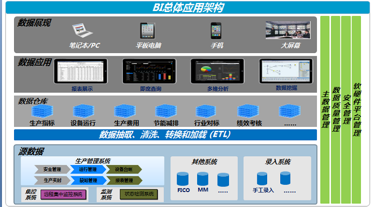 基于數(shù)據(jù)倉庫理念和思想,對公司不同應(yīng)用系統(tǒng)的數(shù)據(jù)進(jìn)行整合,實(shí)現(xiàn)新能源公司總部及各分、子公司的核心業(yè)務(wù)數(shù)據(jù)集中、集成與優(yōu)化整合,統(tǒng)一指標(biāo)口徑,建立新能源電力公司的數(shù)據(jù)中心,從而消除信息孤島,實(shí)現(xiàn)所有業(yè)務(wù)數(shù)據(jù)的統(tǒng)一管理。