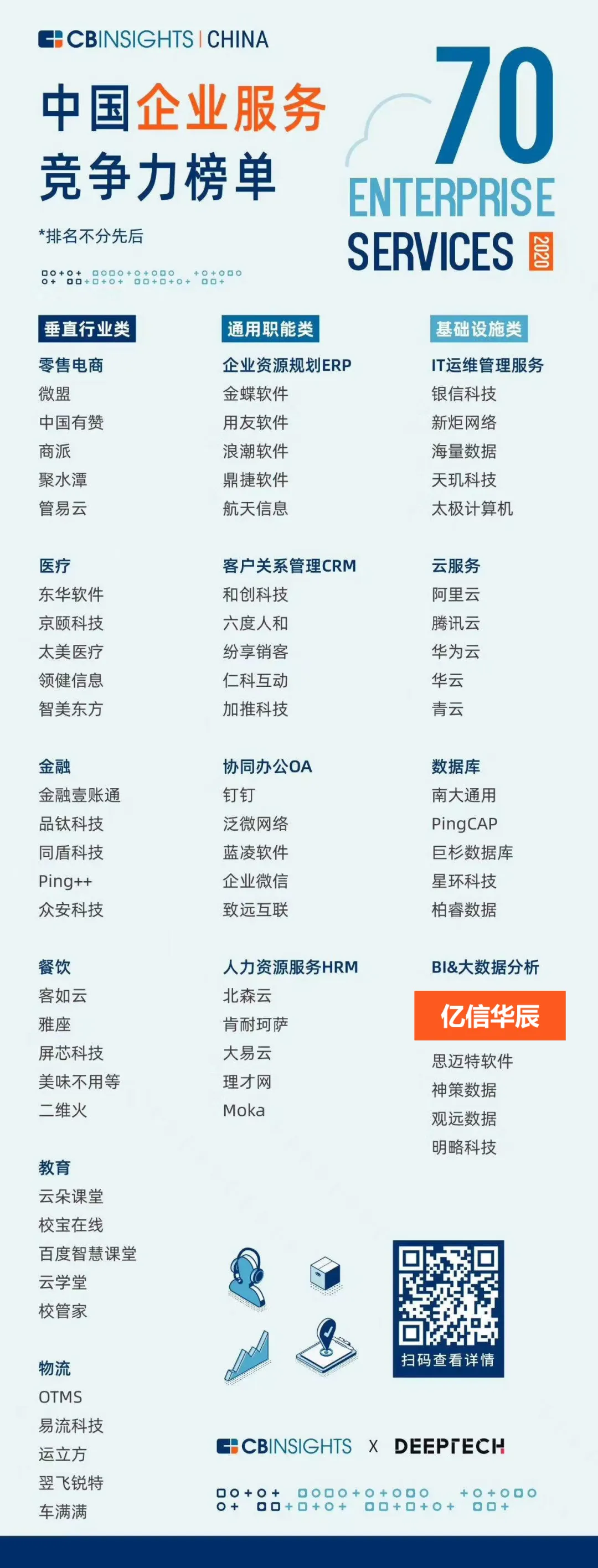 5月28日,全球知名的市場數(shù)據(jù)研究平臺CB Insights首次發(fā)布了中國企業(yè)服務競爭力榜單。為了更好地理解企業(yè)服務的主要內容和行業(yè)狀況,榜單按照服務層次和內容區(qū)分,將企業(yè)服務公司劃分為不同類別,億信華辰入選細分領域BI&大數(shù)據(jù)分析廠商榜單。