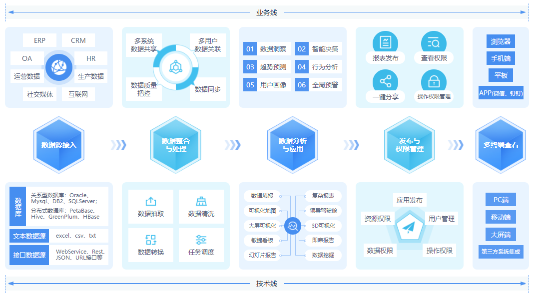 BI作為企業轉型數字化最高效的方式之一,受內外部環境影響,對于廣大企業來說,采用具有國內知識產權的產品和技術更為踏實。而BI國產化替代的關鍵在哪里呢?一方面,要實現國產軟件廠商產品、技術之間的適配,從而完成信息化的系統性替代,全部遷移到國產軟硬件產品中來;另一方面,BI產品本身的便捷性,方便用戶更易習慣和使用。