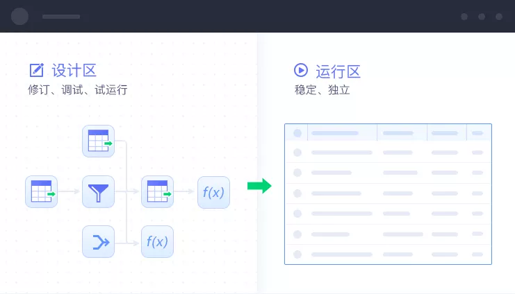 為保證運(yùn)行環(huán)境的穩(wěn)定可靠,提供了設(shè)計(jì)區(qū)與運(yùn)行區(qū)隔離的機(jī)制,所有作業(yè)的修訂和更改通過在設(shè)計(jì)區(qū)完成調(diào)試和試運(yùn)行后,通過發(fā)布機(jī)制,發(fā)布到穩(wěn)定的運(yùn)行環(huán)境,保證開發(fā)和運(yùn)行兩不耽誤。