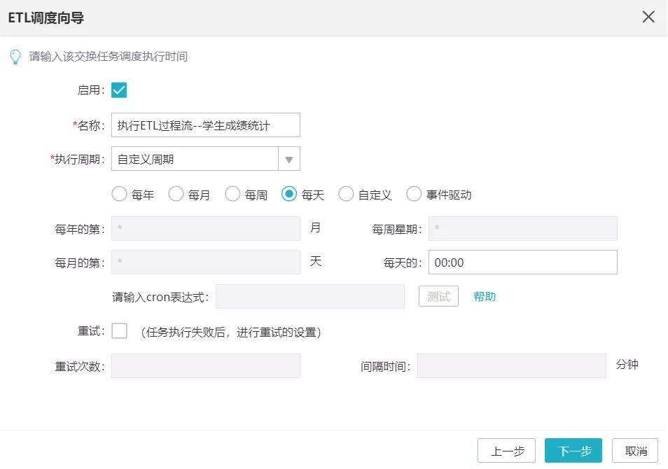 一般情況下,ETL過程都會(huì)伴隨著調(diào)度任務(wù)的設(shè)置。比如,某銷售部門需要每周五抽取數(shù)據(jù)計(jì)算當(dāng)周銷售利潤(rùn)用于匯報(bào),如果利用ETL實(shí)現(xiàn),時(shí)間調(diào)度管理必不可少。億信ABI的ETL調(diào)度導(dǎo)向,深度考慮各使用場(chǎng)景,用戶只需簡(jiǎn)單操作,即可實(shí)現(xiàn)復(fù)雜的調(diào)度任務(wù)。