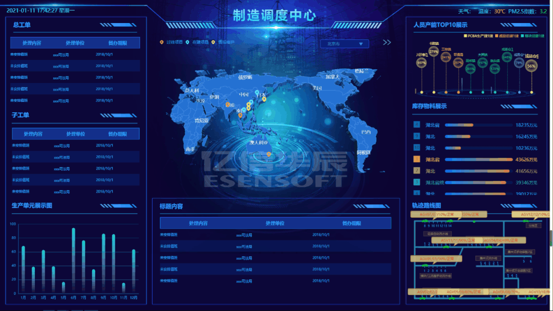 經常有朋友抱怨,想做可視化大屏,但覺得好難。我說,有個好工具很重要。 想快速做出一個數據大屏,當然離不開可視化組件。你離高大上的大屏只差一個億信ABI,簡單拖拽組件,替換業務數據,輕輕松松搞定酷炫大屏。 億信ABI的酷屏分析內置了數十套大屏模板,直接套用, 酷炫大屏一鍵生成。當然還有布局、表格、統計圖、地圖、參數等九大類型百余種組件,不論是單看還是組合在一起都能讓你的大屏熠熠生輝。 除了這些組件,工程獅還開發了新一波的組件,讓你利用這些大屏組件,快速開發數據大屏。 01主視覺圖表 主視覺圖表作為大屏的視覺中心,一般放在中間位置,用于呈現核心指標和重要信息,通常帶有炫酷的動效,給人帶來視覺的震撼效果。中國地圖